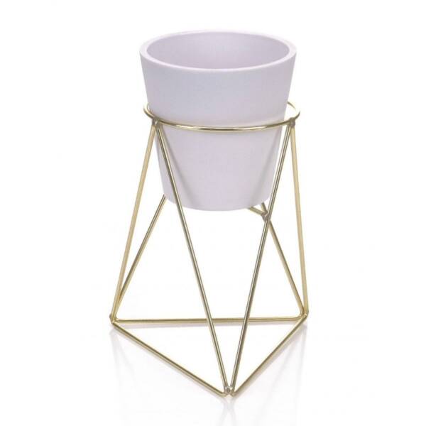 Combinación perfecta de modernidad y sofisticación. Su diseño minimalista en blanco resalta la belleza de tus plantas, mientras que la base dorada añade un toque de lujo y distinción.