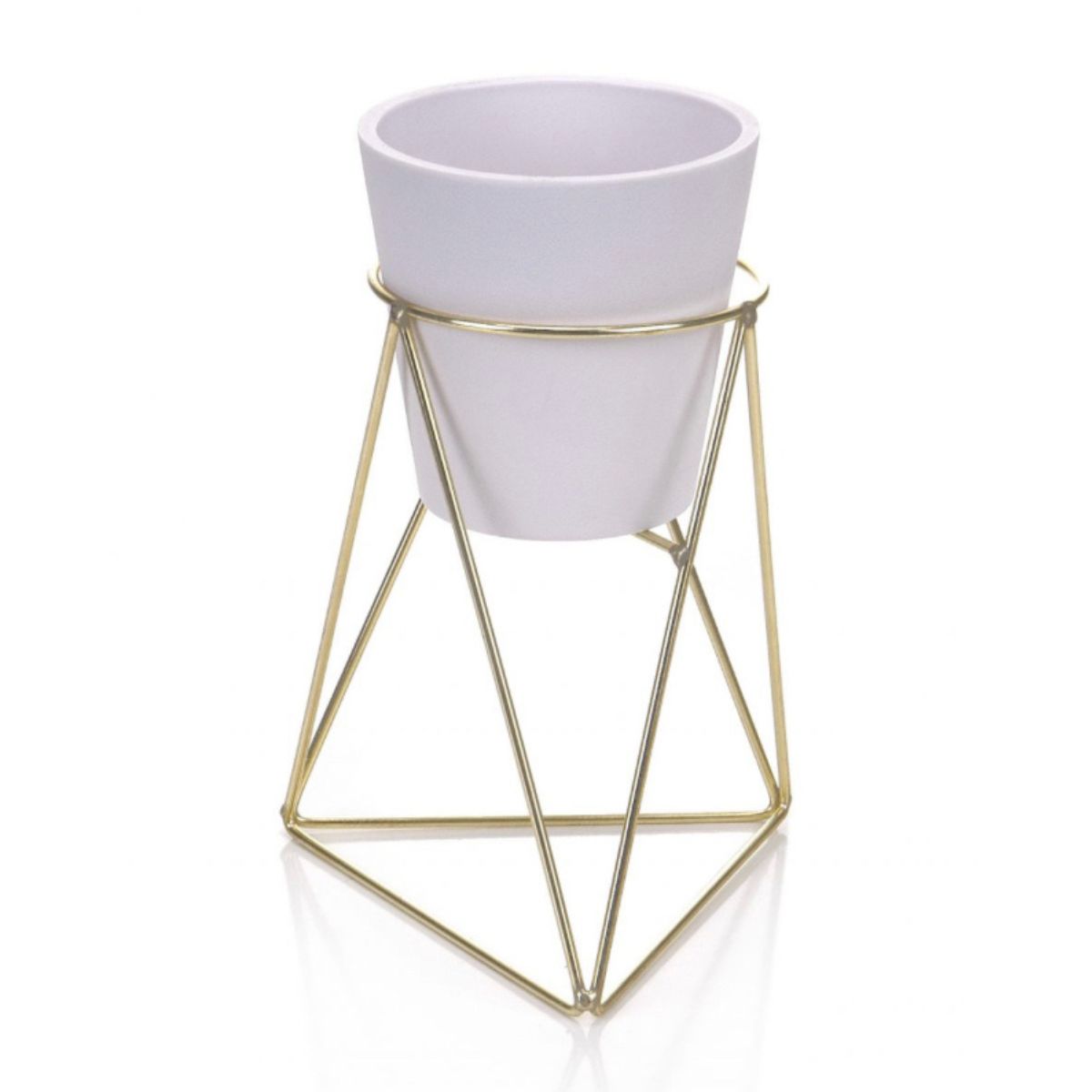 Maceta Blanca Conica Con Base Dorada