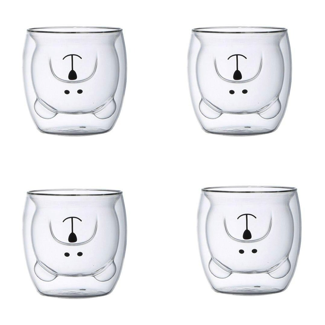 Set 4 Tazas Doble Vidrio Diseño Perrito