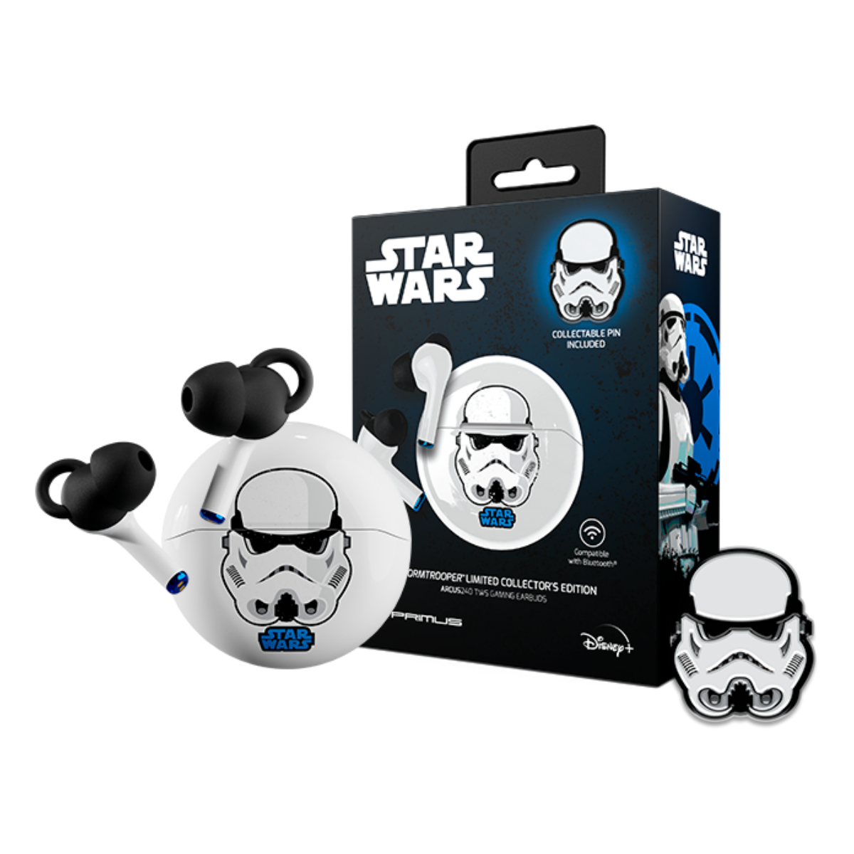 Sumergite en el universo de Star Wars con los Auriculares Inalámbricos Primus Arcus 240 Stormtrooper blancos (PWH-S240STW). Diseñados para fanáticos de la saga y gamers exigentes, estos auriculares TWS ofrecen conectividad Bluetooth 5.3 para una transmisión estable y de baja latencia (56ms), ideal para juegos móviles. Su diseño intraaural y clasificación IPX4 los hace resistentes al sudor, perfectos para uso diario. Con una autonomía total de hasta 21 horas gracias a su estuche de carga, y controles táctiles intuitivos, brindan comodidad y funcionalidad. Incluyen certificado de autenticidad, calcomanías de Stormtrooper? y pin coleccionable. Compatibles con Windows y Mac, son el accesorio ideal para fans de Star Wars y gamers que buscan rendimiento y exclusividad.