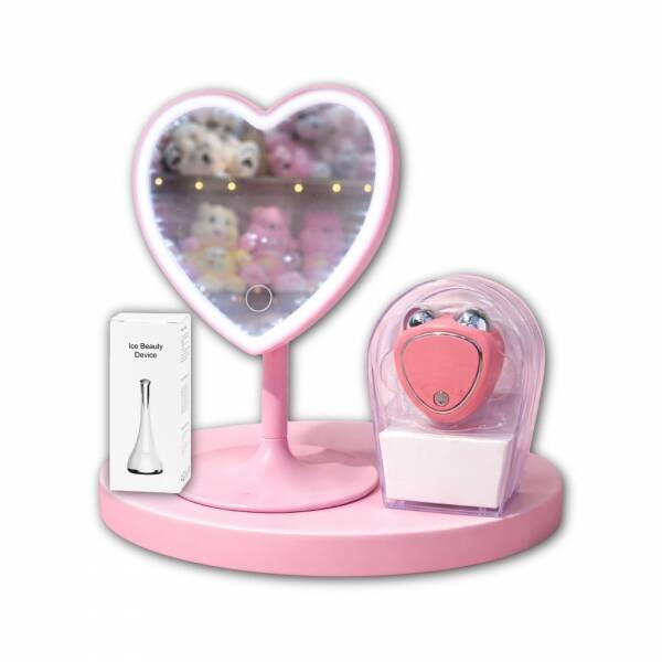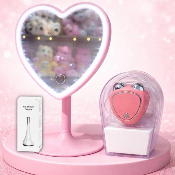 Kit Espejo LED Corazón + 2 Masajeadores Faciales Beauty