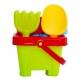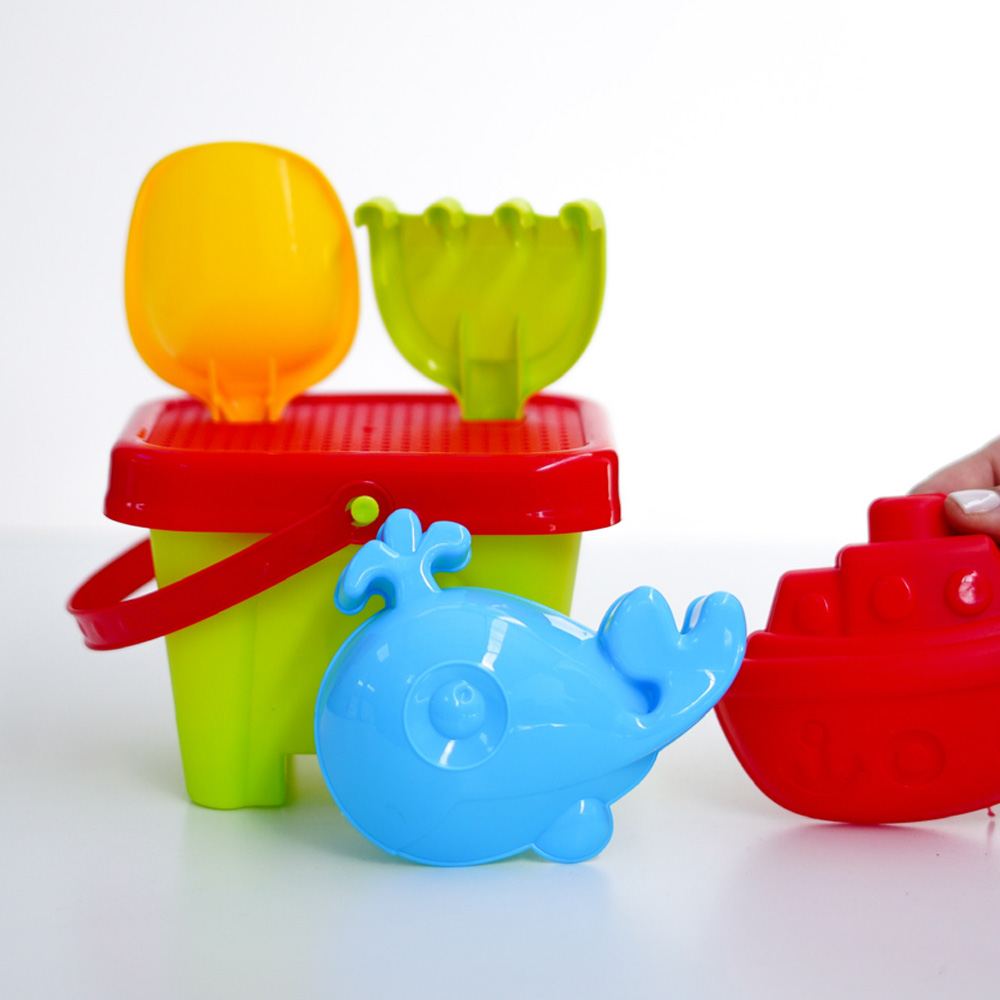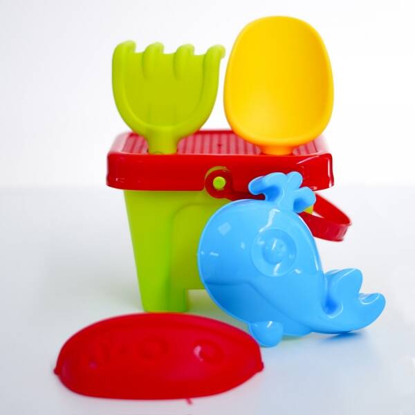 Juego de playa infantil con herramientas y accesorios para crear formas en la arena y disfrutar del agua. Hecho con materiales resistentes y seguros, ideal para estimular la imaginación y el juego al aire libre.